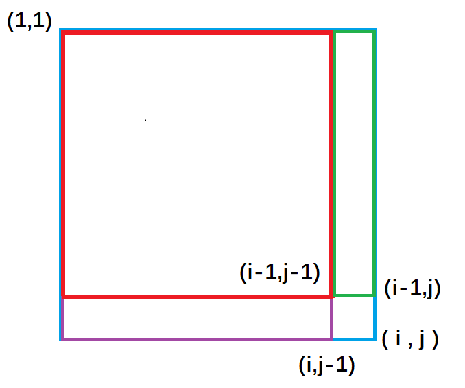 s[i][j] = s[i - 1][j] + s[i][j - 1 ] + a[i][j] - s[i - 1][j - 1]