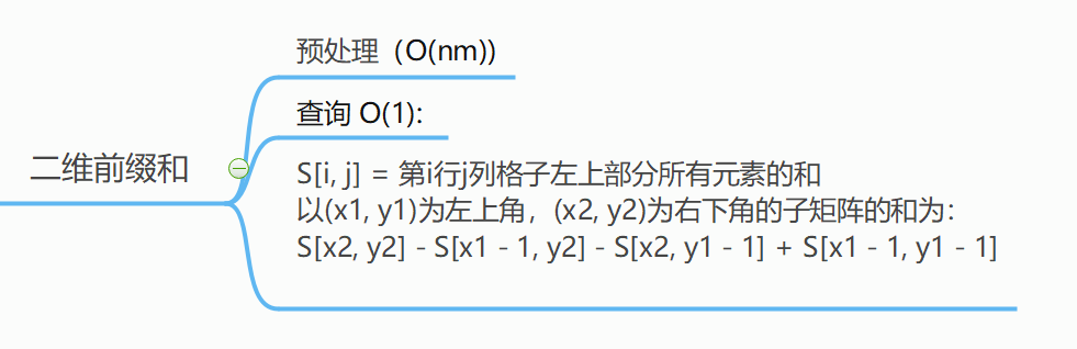 这样的时间复杂度为O(n * m),如果n和m的数据量稍微大一点就有可能超时,而我们如果使用前缀和的方法来做的话就能够将时间复杂度降到O(n + m),大大提高了运算效率。