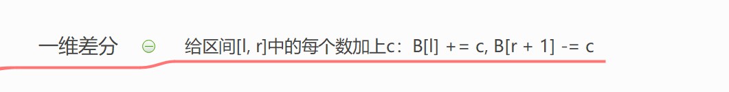 因此我们得出一维差分结论:给a数组中的[ l, r] 区间中的每一个数都加上c,只需对差分数组b做 b[l] + = c, b[r+1] - = c 。时间复杂度为O(1), 大大提高了效率。